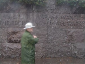 As the tour wound its way across the various memorials the temperature dropped and the snow came down harder. The tour group was getting cold. Zanoletti said “It’s Survivor DC” as he kept his head down to head off the snow and rain. Sorrentino said that he was doing “okay” but he looked a bit wet.